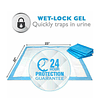 La sabanilla está hecha con 6 capas: Superficie protectora resistente y de rápida absorción - Capa concentradora del líquido hacia el centro de pad - Capa uniformadora del líquido - Capa conversora de líquido en gel - Capa antihumedad - Capa protectora de superficies